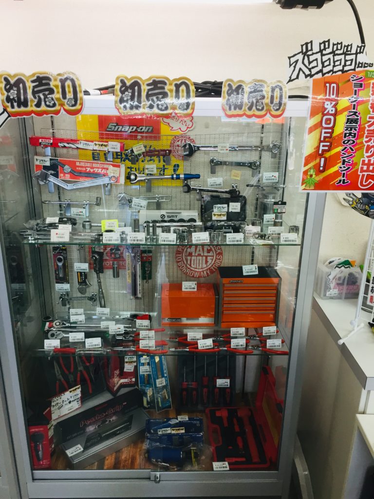 こちらのショーケースの中にあるハンドツールを今なら表示価格の10%オフで購入できちゃいます( *´艸`)