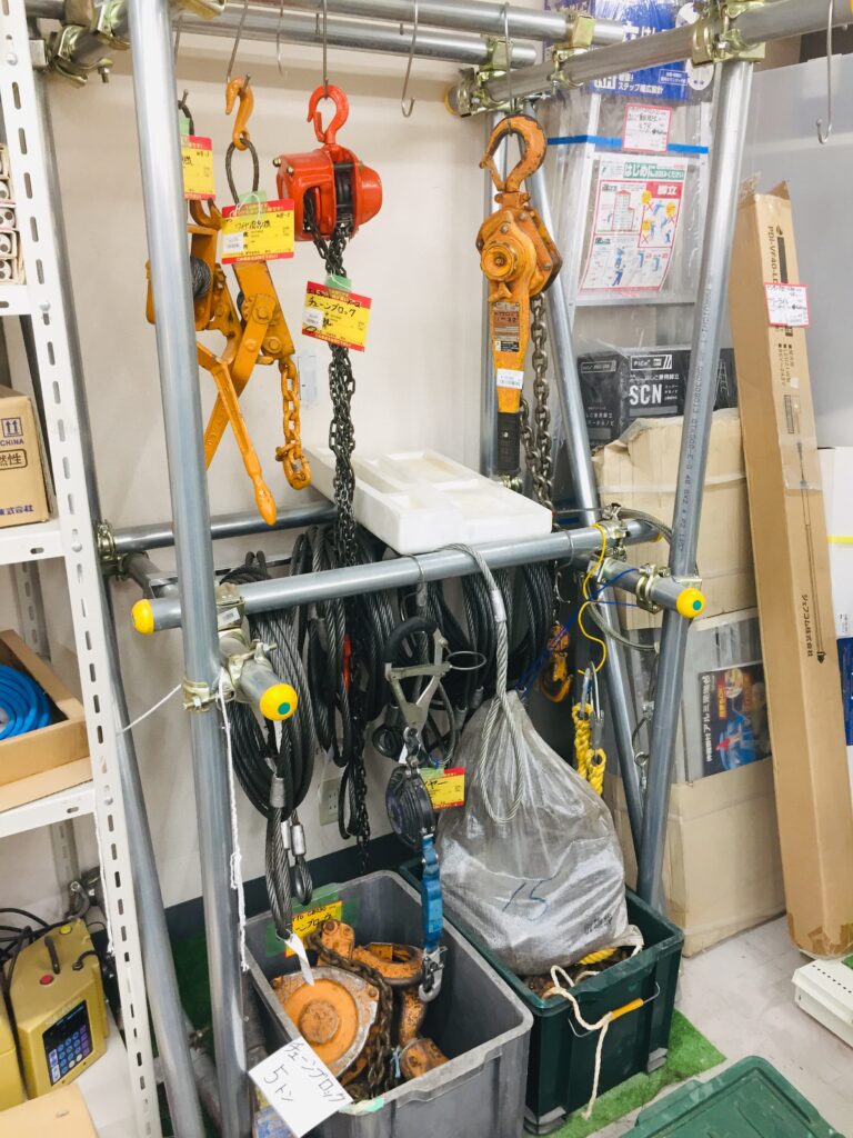 そう、レバーブロックやチェーンブロックといった荷揚工具が不足しております(´;ω;`)