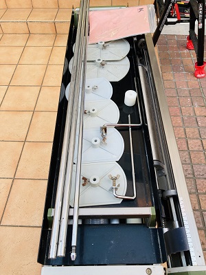 本体のほか、切れ味抜群のスリッターや糊付け作業に必要な細かい付属品もほぼ揃っている状態ですので、購入後すぐにご使用いただけるかと思われますよ。