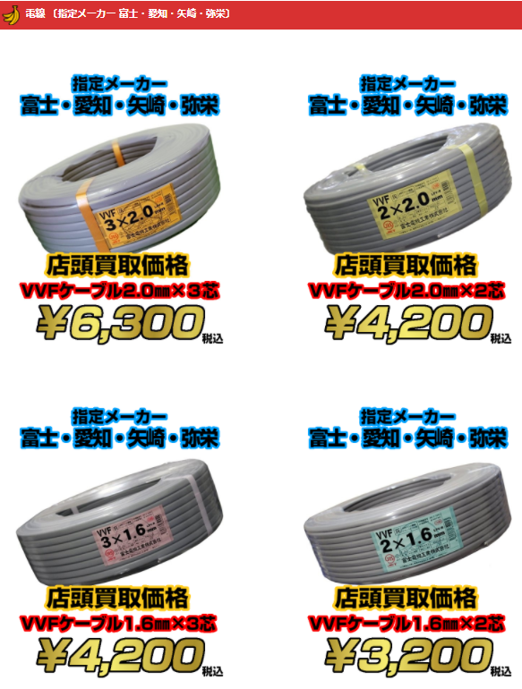 火曜日、野田愛宕店は店休日となっておりますので本日のVVFケーブル・ペアコイルお買取りはリライズ市川行徳店に是非お持ちよりくださいませ!