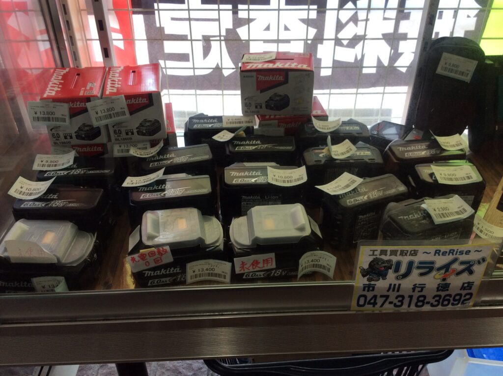 中古から未使用品数多く取り揃えております。中古のバッテリーをお買い上げご検討のお客様にはバッテリーの充電回数にも注目して下さい。当店にはマキタのバッテリー内容をチェックする機械があります。
