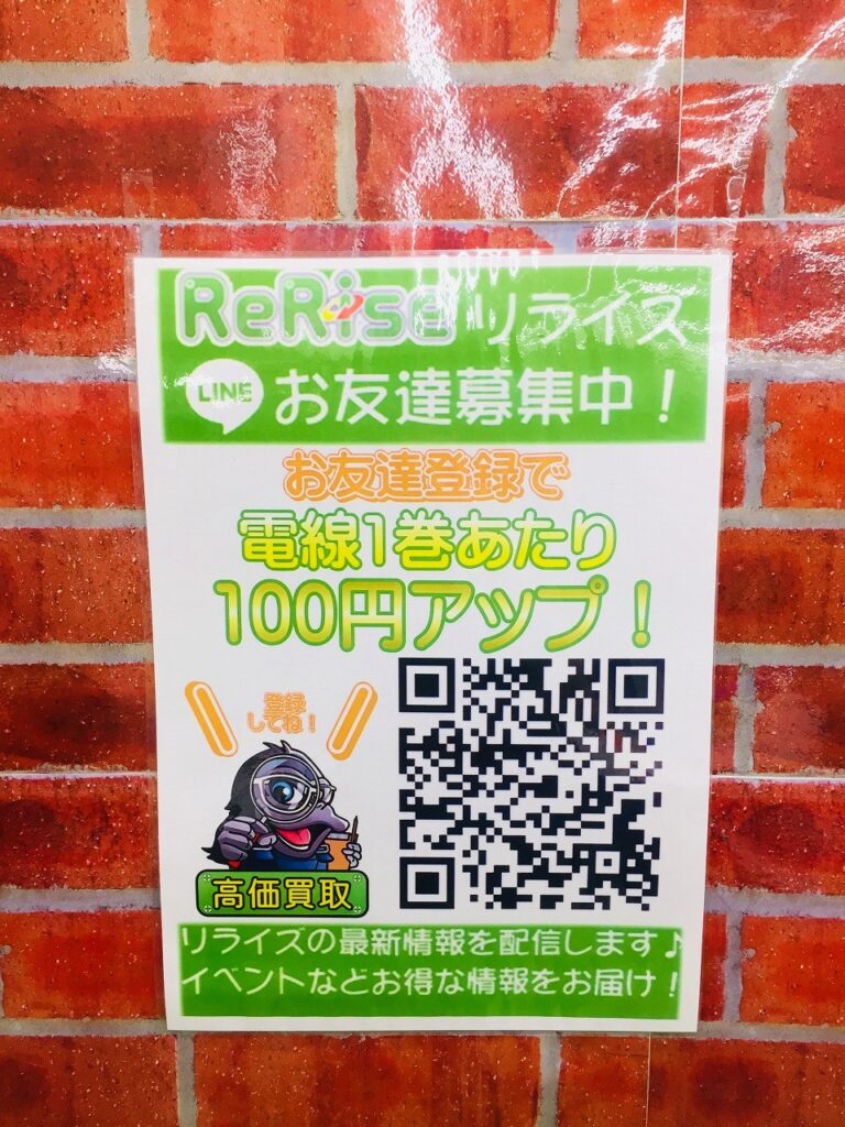 さらにさらにここから電線に関しましてはなんと買取時ライン登録で1巻につき100円アップ!!