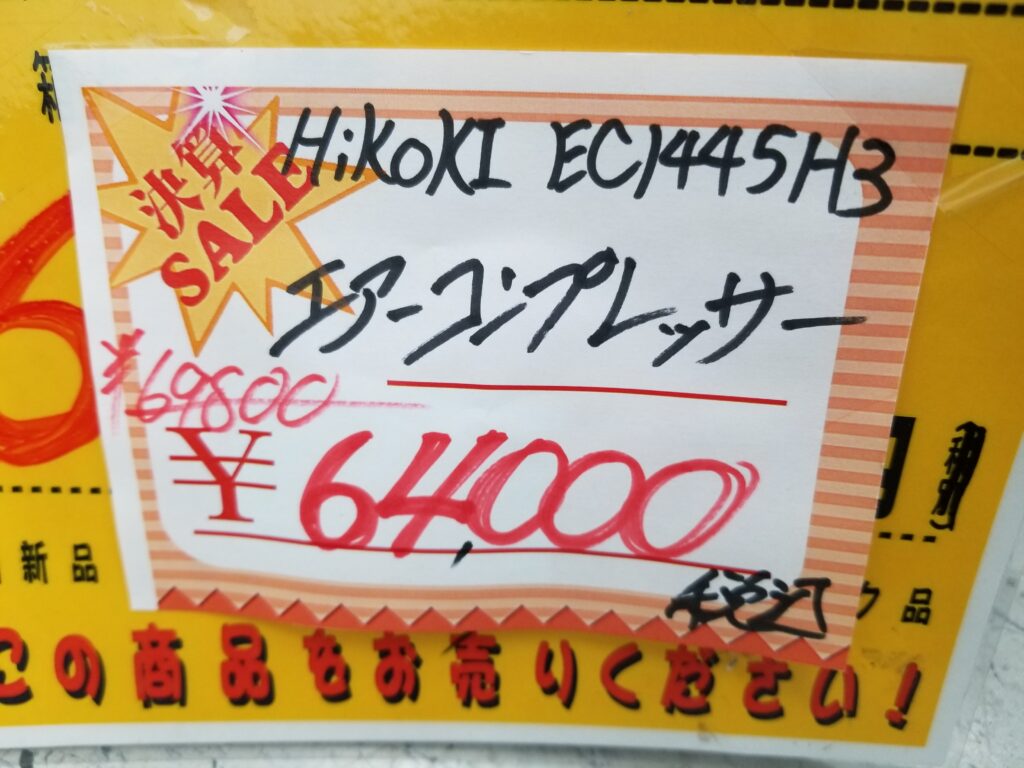 HiKOKI エアーコンプレッサー】が通常価格69,800円64,000円とプライスダウンです!