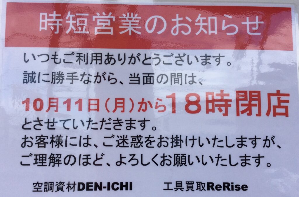 当面の間、営業時間を短縮致します。10時開店から18時閉店となります。お客様にはご迷惑お掛け致しますが、宜しくお願い致します。
