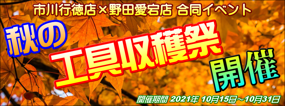 10月15日から市川行徳店、野田愛宕店、両店で秋の合同イベント【秋の工具収穫祭】が大好評開催中です!