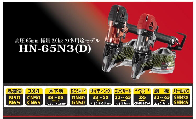 【MAX 高圧65mm エアロスター 釘打ち機 HN-65N3(D)-G マイスターレッド】