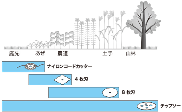 刈払機本体が適合するか、刈りたい草は刈れるのか、安全に使用できるかがポイントです。