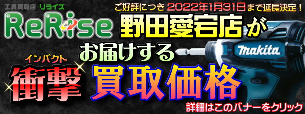 いつも工具専門リサイクルショップリライズ野田愛宕店をご利用いただき誠にありがとうございます。