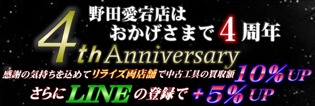 を迎えることとなります。普段ご利用頂いておりますお客様への感謝を込めまして来たる2022年2月23日(土)からリライズ市川行徳店、野田愛宕店両店で野田愛宕店4周年記念イベントを開催いたします!