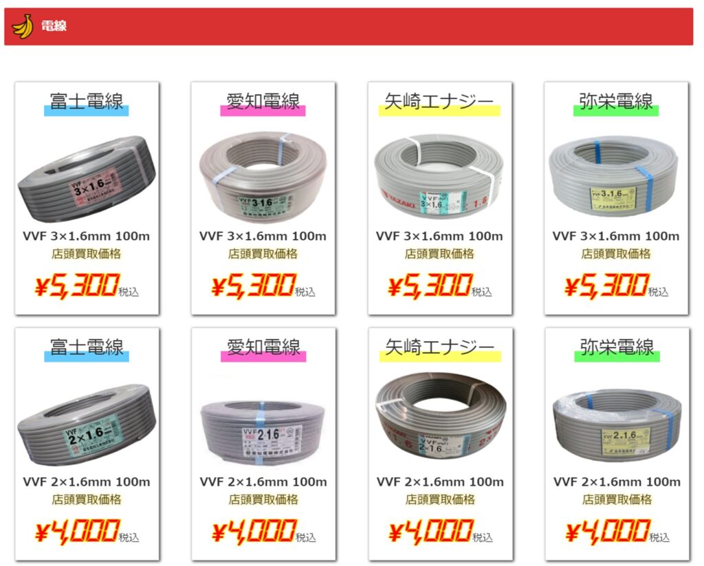 VVFケーブルの買取価格を大幅にアップいたしましたのでこの機会に是非当店までお売りくださいませ