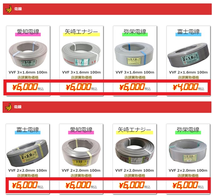 当店ではペアコイル・VVFケーブルの在庫が非常に少ない為電材の買取にもかなり力を入れており、特にVVFケーブルやペアコイルといったエアコン工事部材においては、地域一番の買取を目指しております! この機会に是非お売りください!!