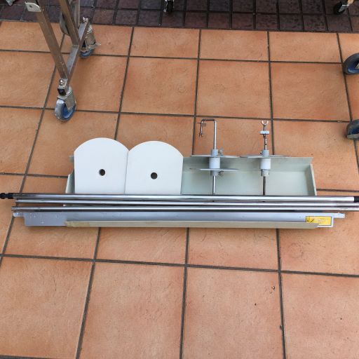 本体のほか、切れ味抜群のスリッターや糊付け作業に必要な細かい付属品も、ほぼ揃っている状態ですので、購入後すぐにご使用いただけるかと思われますよ。