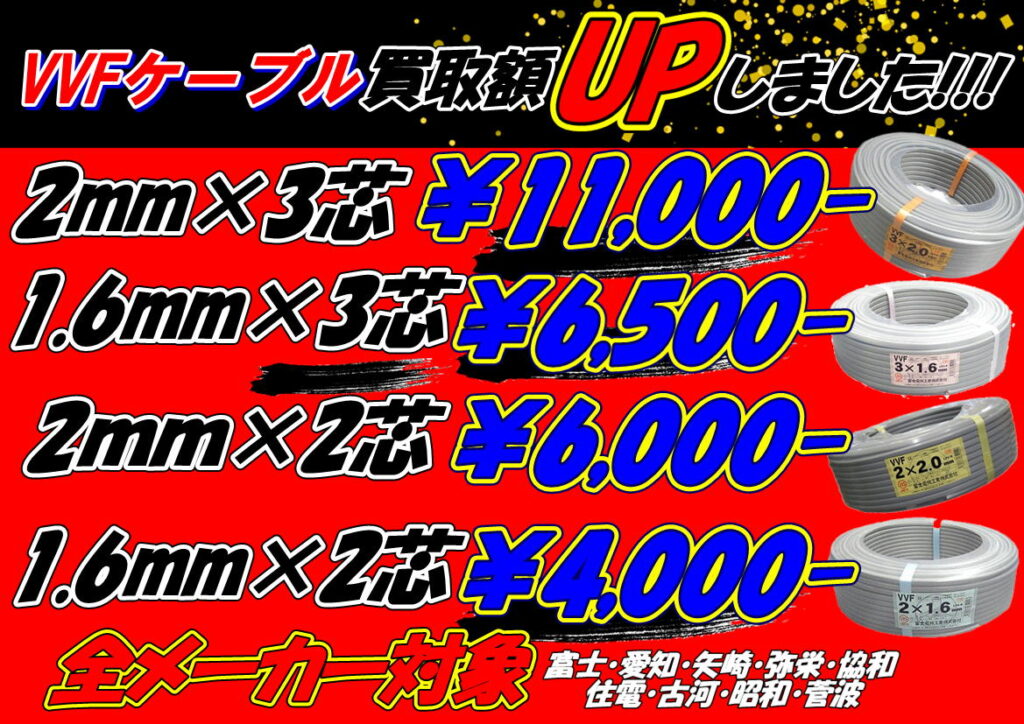 主要電線は全メーカー共通価格でお買取りさせていただきます!