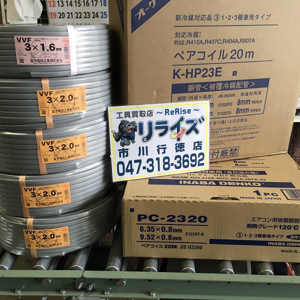 工具の買取・販売に特化した当店では、電材の買取にもかなり力を入れており、特にVVFケーブルやペアコイルといったエアコン工事部材においては、地域一番の買取を目指しております!