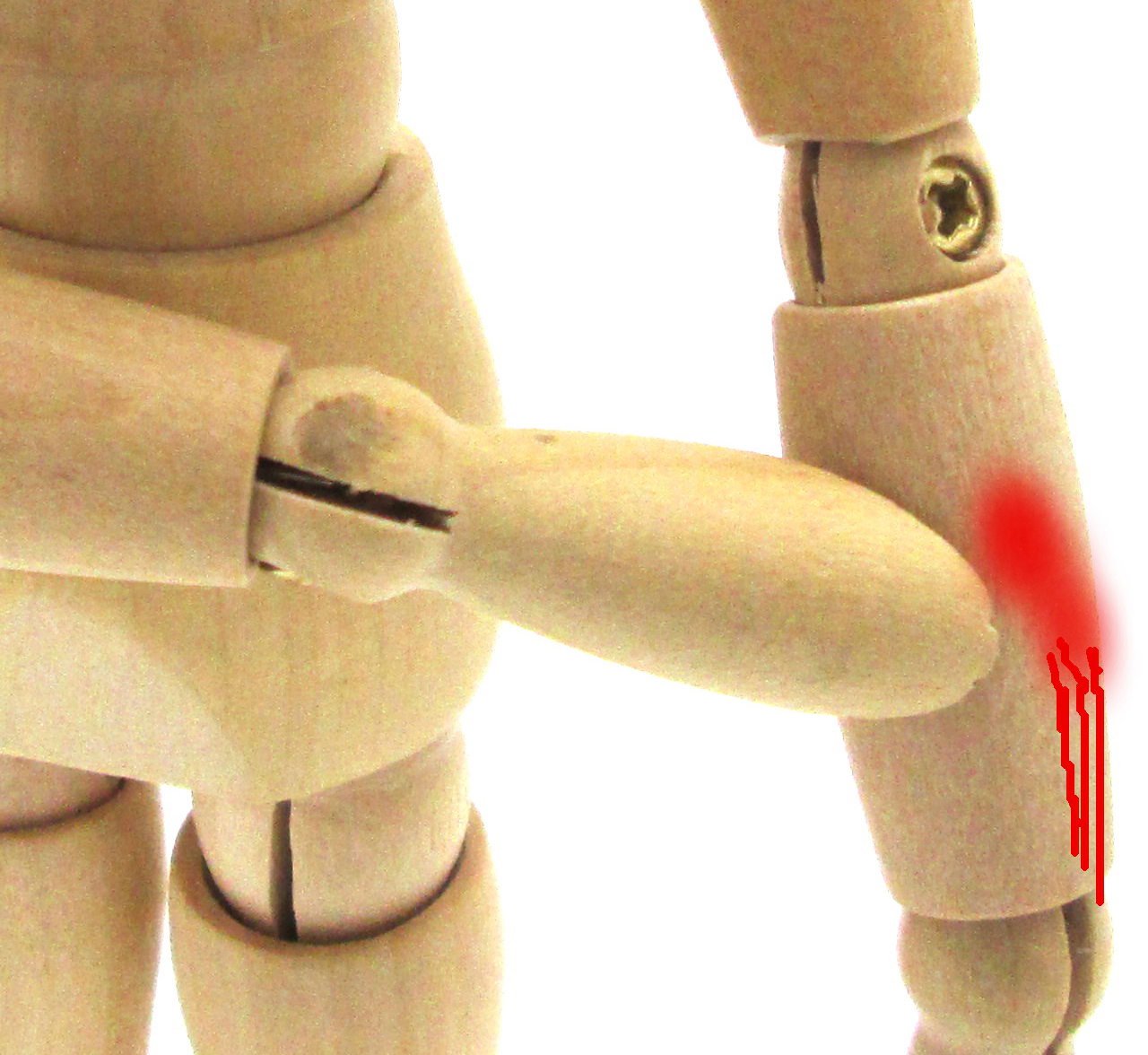 - 地面に膝をついて、丸鋸で木片を切っている最中、一瞬丸鋸を手前に引いたとき、右足太腿に丸鋸の刃が当たり、裂傷を負った。