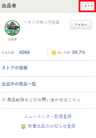 こちらも出品者情報欄にストア出品であれば、ストアアイコンが表示されます。
