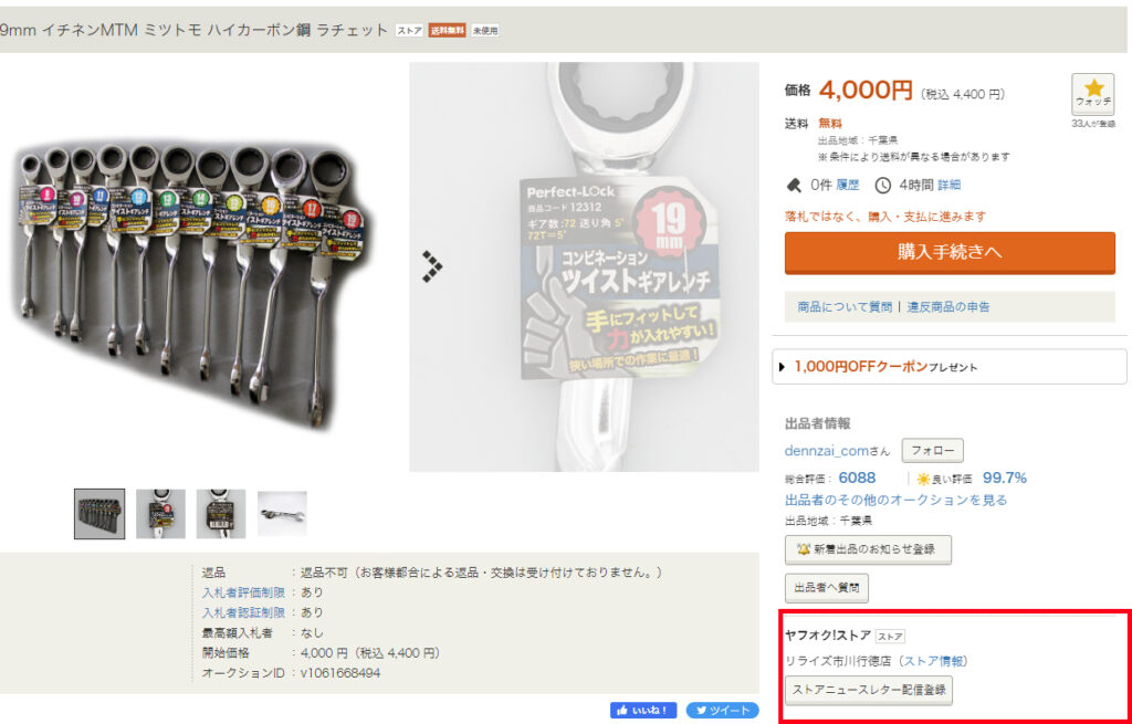 左はパソコンからヤフオク商品ページを確認したものです。