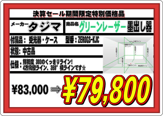 タジマのグリーンレーザー墨出し器(ZEROGS-KJC)が
