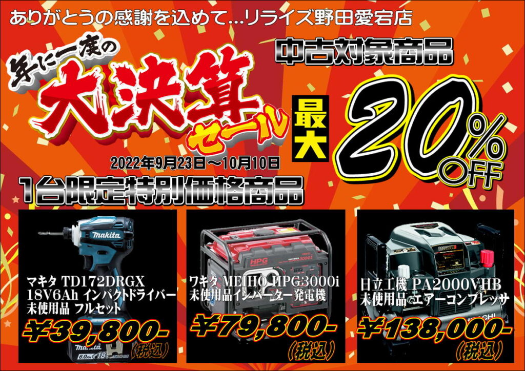 中古工具を20%UPしてお買取りをさせて頂きました!!