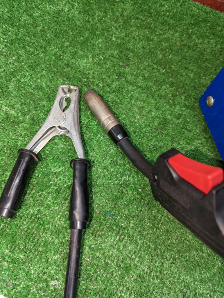 次に溶接物にマイナスの電流を流すためのアースグリップを挟みます!
