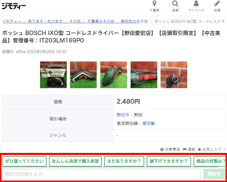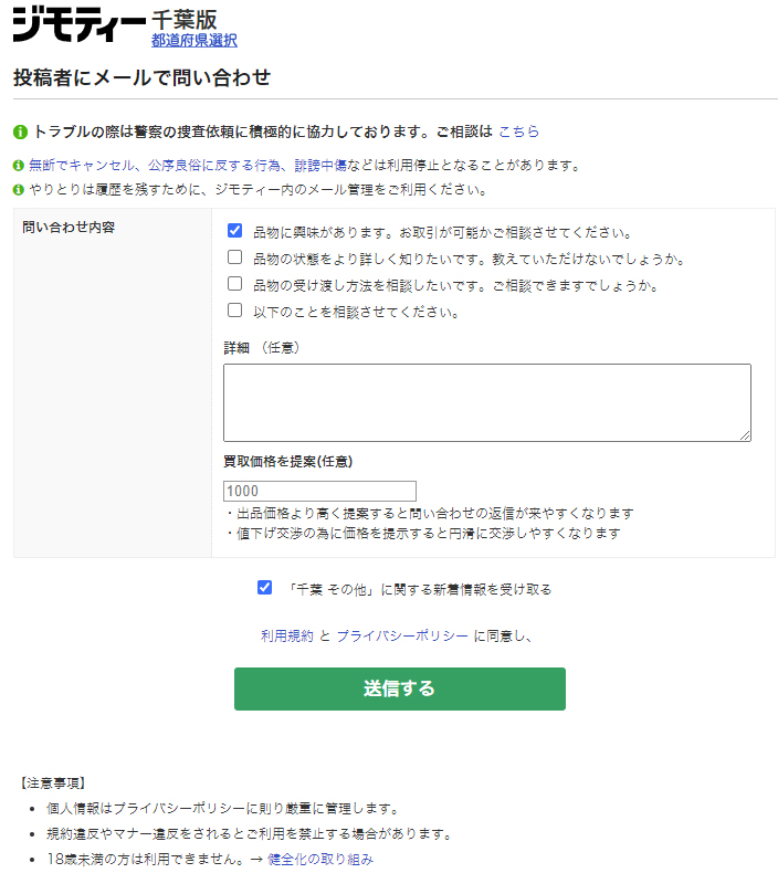 ※ジモティーあんしん決済の場合は事前の問い合わせを受け付けていない場合があります。