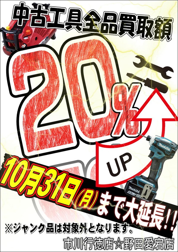 中古工具全品買取額20%UPです(≧▽≦)