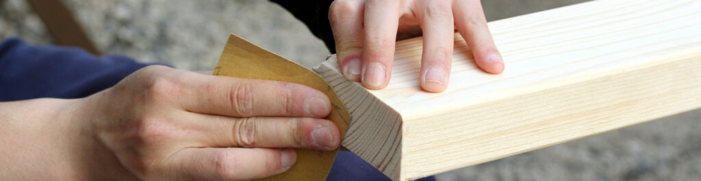 木目に対して直角にサンディングしたり、円を描くようにサンディングすると、木目にキズがついて塗装するとはっきりわかるようになります。