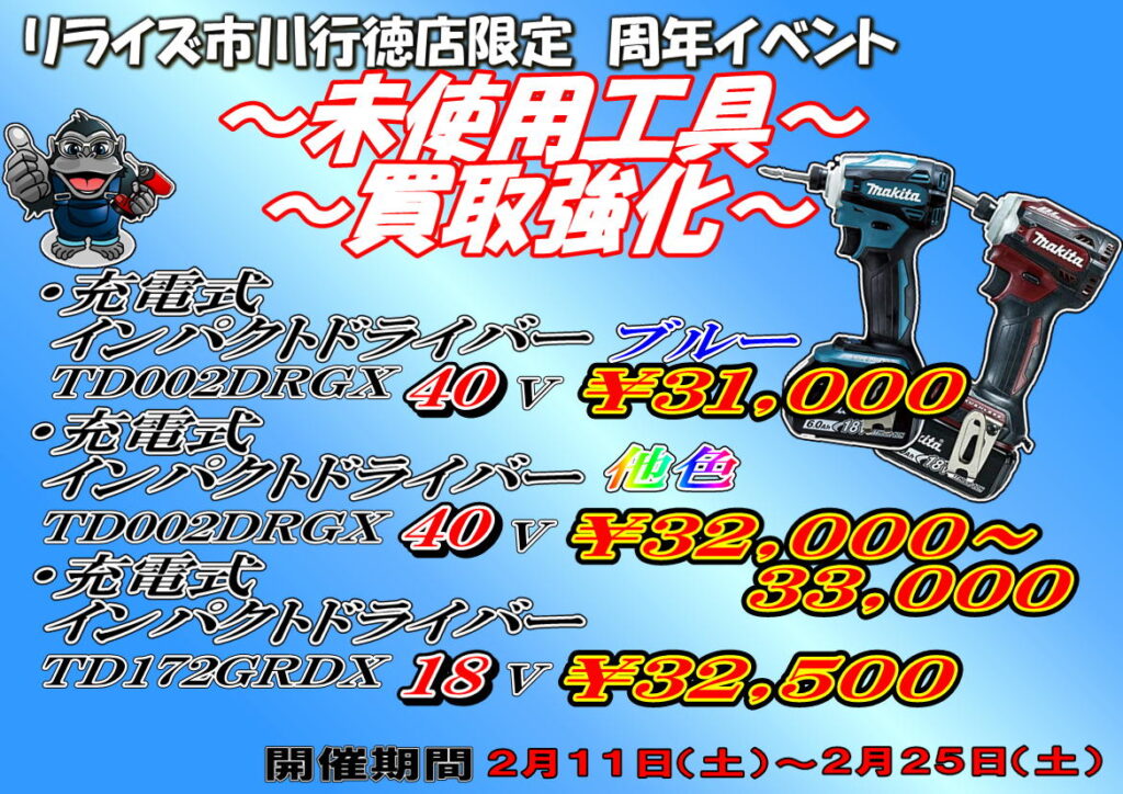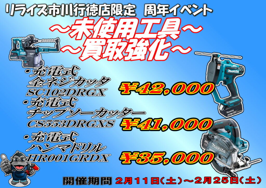 市川行徳店では未使用工具多数買取強化させていただきます!