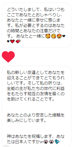 おそらくは最初は当たり障りないやり取りを行うロマンス詐欺の類かと思います。