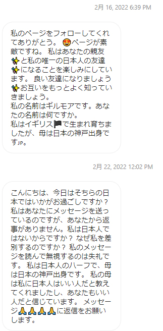 そういった問い合わせは詐欺やよくない事への誘導も考えられるのでスルーしているのですが、一見して分からないこともあります。