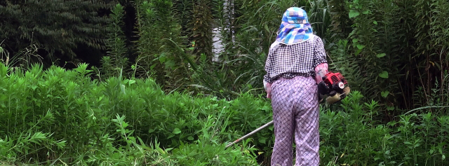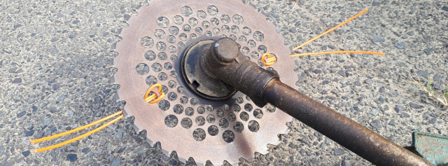 最近では硬い刃物の代わりにナイロンコードを使って草を刈り取ることもできます。
