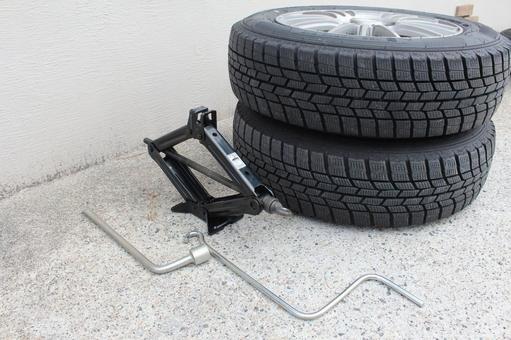 当然ながらタイヤ交換するのにタイヤが地面に着いたまま交換は魔法でも使わない限り無理でしょう。
