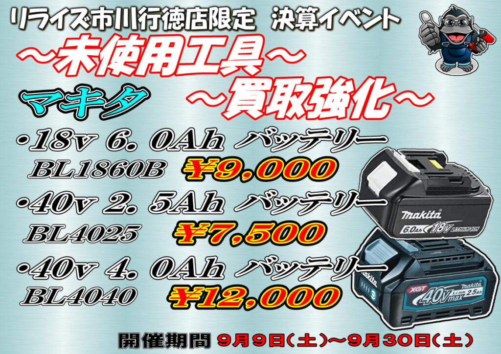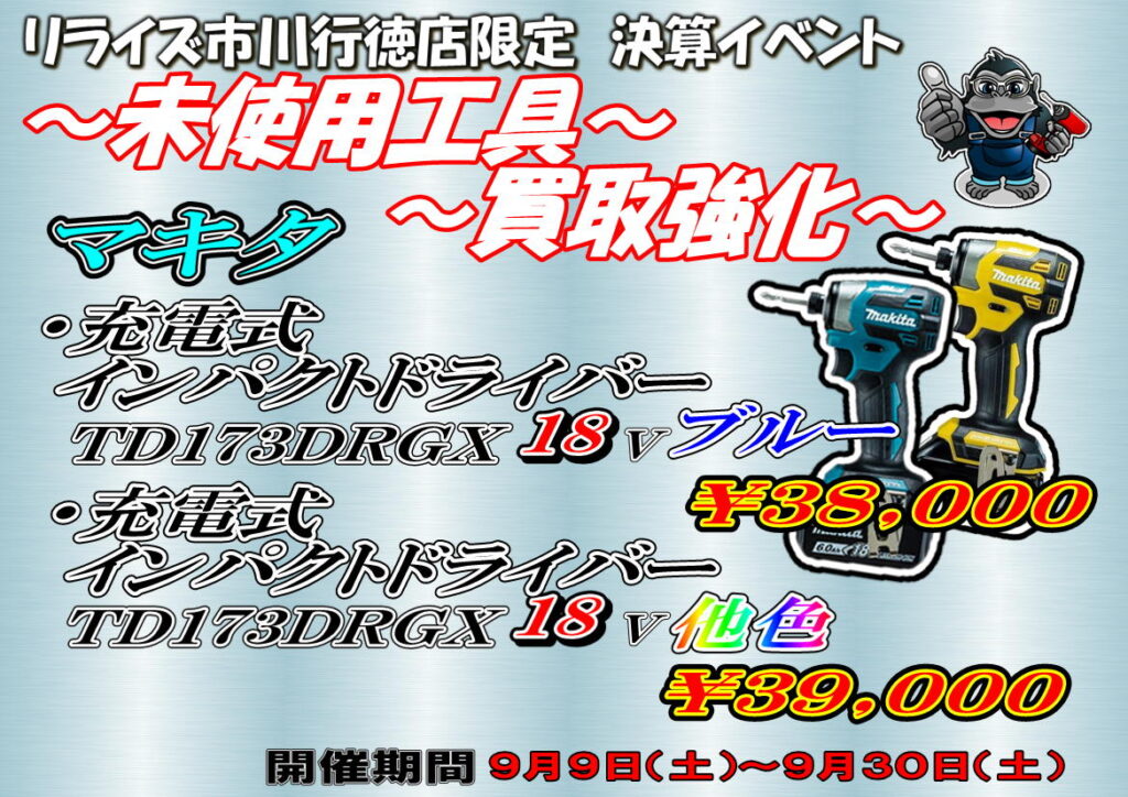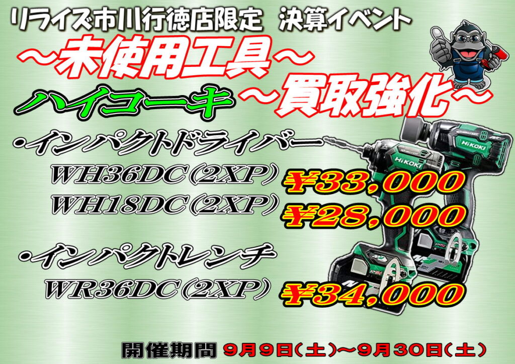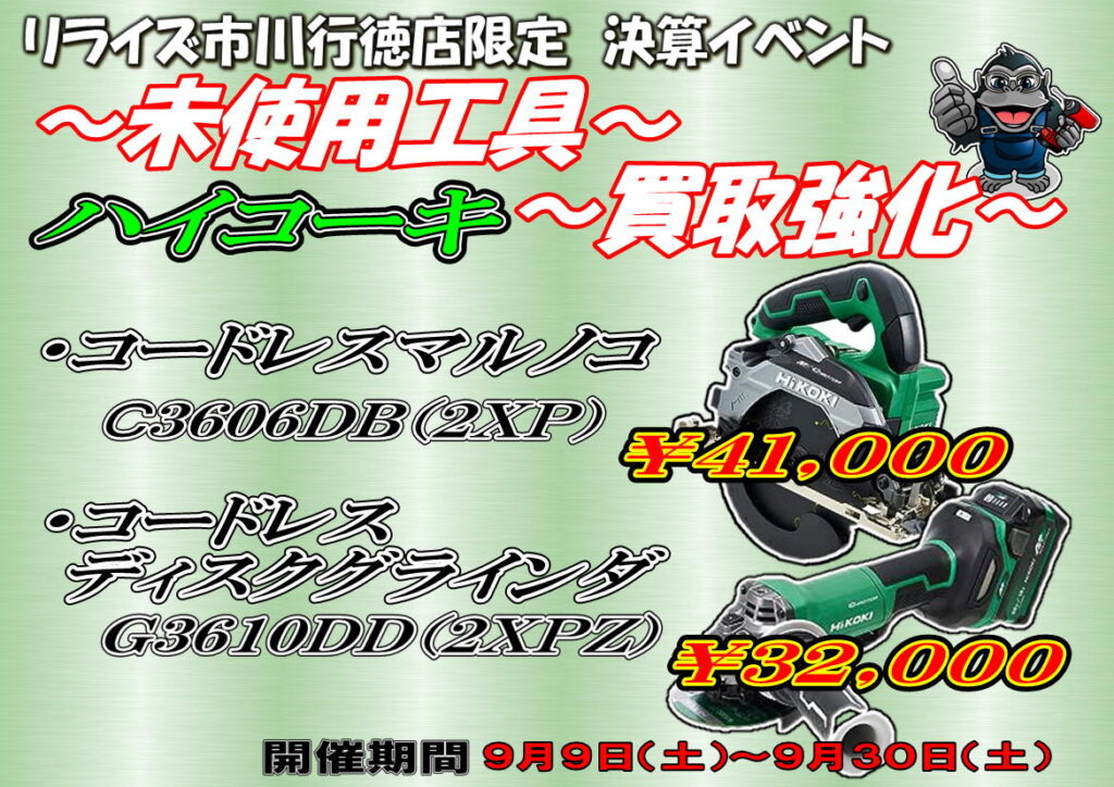 市川行徳店限定の決算イベント!!未使用工具を売るなら市川行徳店!!【リライズ市川行徳店】