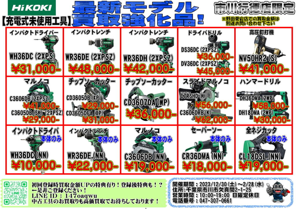 未使用工具買取強化品ラインナップ更新!!1月~2月買取強化品【リライズ市川行徳店】