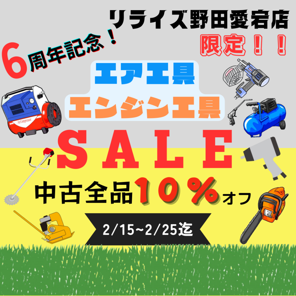 エア工具・エンジン工具中古全品10%OFF‼※未使用品は対象外となります