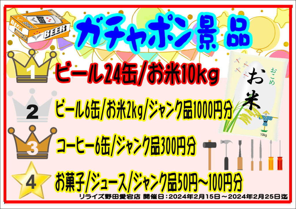 ビールやお米などの景品が当たるイベントになります!
