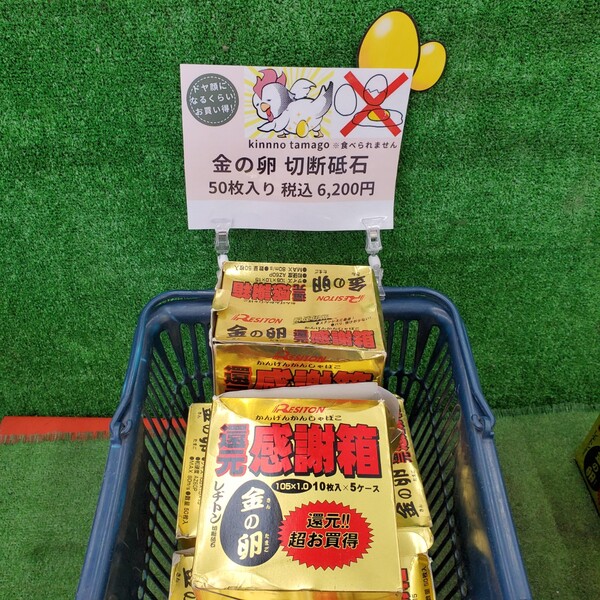 リライズ野田愛宕店に切断砥石【金の卵】が大量入荷だ!