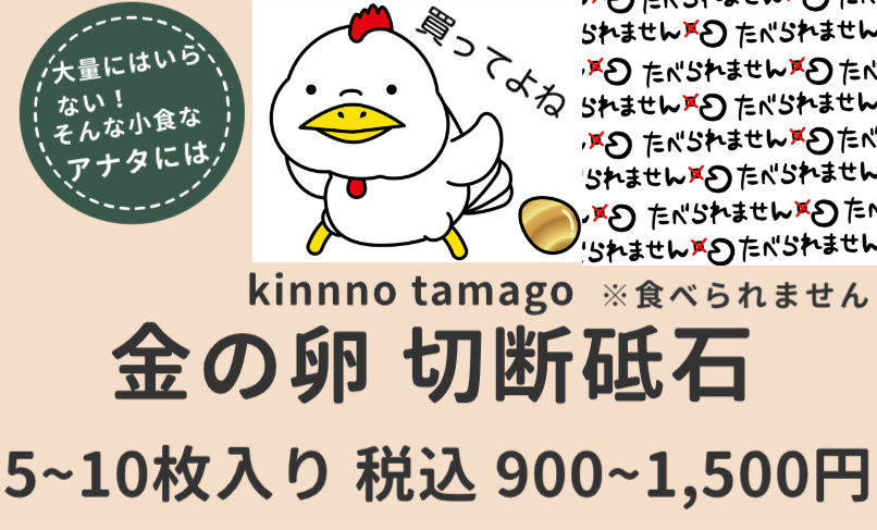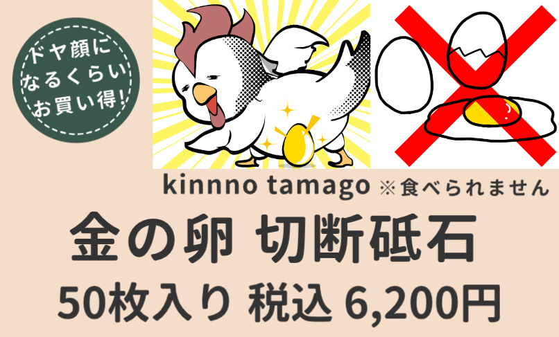 安いからオススメというだけでなく多くの人に愛用されている切断砥石なんだ。あと金の卵って響きがいいでしょ?あとソシャゲでよく金色の卵見るし