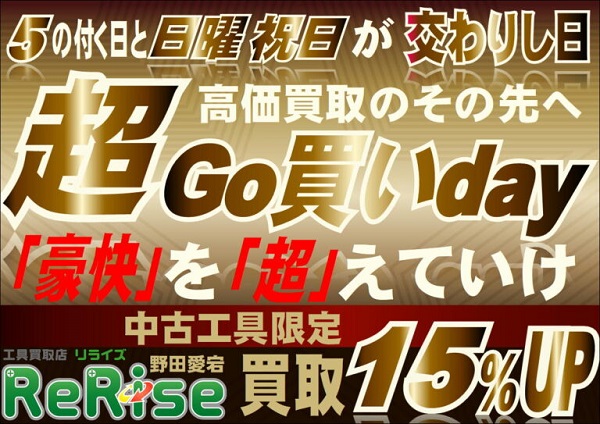 5の付く日と日曜または祝日が重なると中古査定額が15%アップする最強イベです。