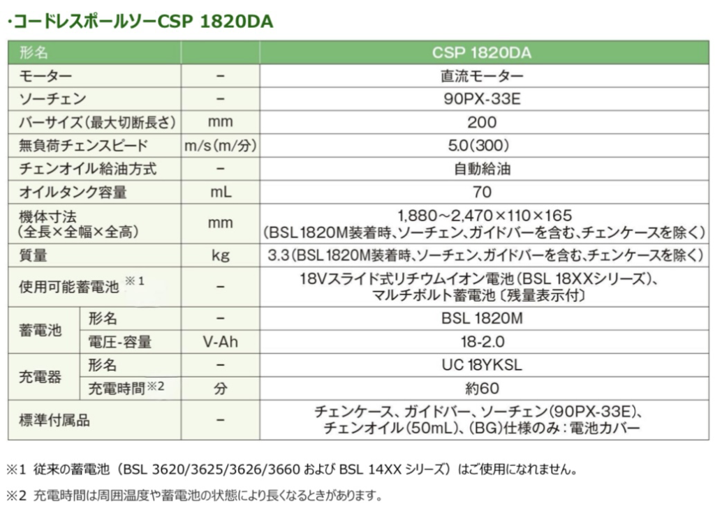 CSP1820DA コードレスポールソー 主な製品の特長