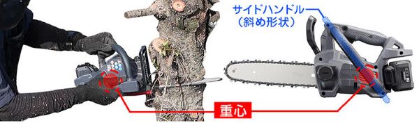 DCS3620TL2のサイドハンドルは、本体の重心近くを握れる斜め形状を採用されております。