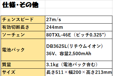 京セラ DCS3620TL2 充電式チェンソーについて