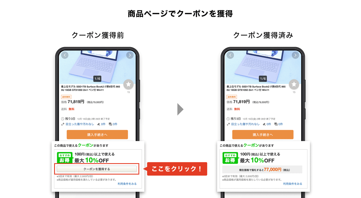 クーポンを獲得するボタンを押して頂き