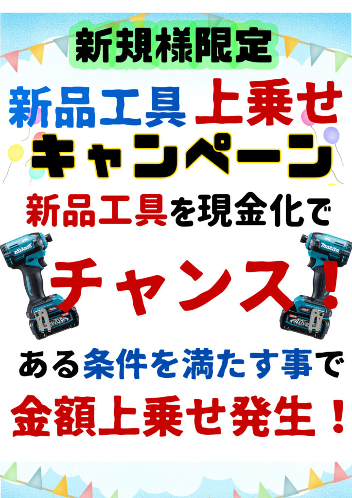 必見!新品工具買取額超上乗せキャンペーン実施!