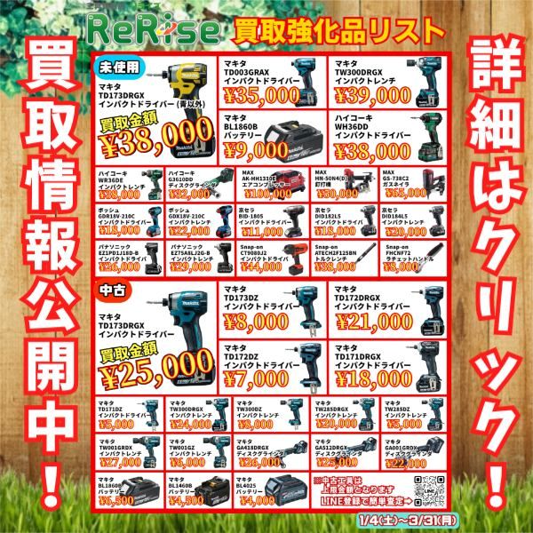 ※中古工具に関しましては、リライズ市川行徳店のみとなります。
