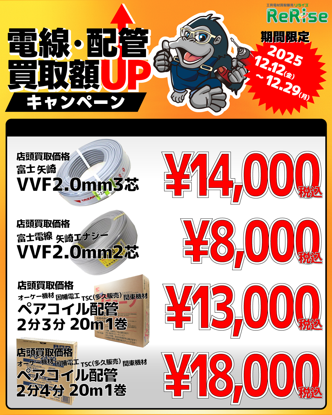 日頃のご愛顧に感謝を込めて、12/12(金)~12/29(月)の期間中の買取価格UP!