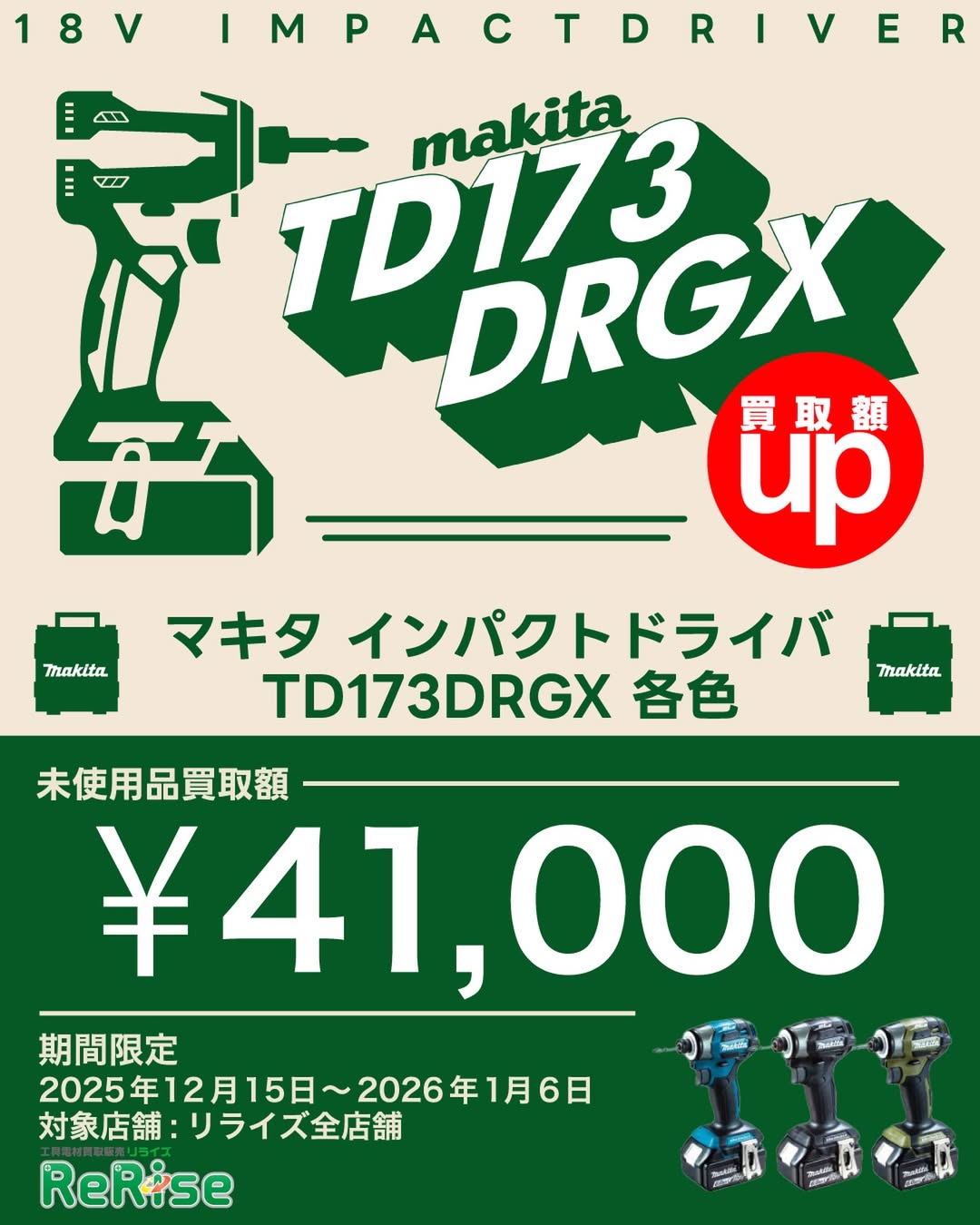 リライズ TD173DRGX 高価買取 キャンペーン!