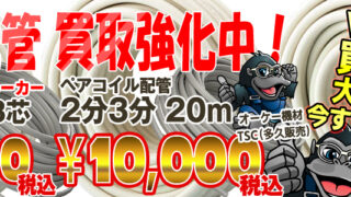 こんにちは、リライズ市川行徳店です!「工具のお店」というイメージが強い当店ですが、現在期間限定で行っている「電線・ペアコイル超買取金額アップイベント」大好評で、まだまだお買取り足りません!!