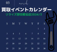 お知らせ 2024年3月のイベントカレンダーをご紹介!!【リライズ野田愛宕店】 工具のリサイクルショップ野田愛宕店の3月買取カレンダーのご紹介! 2024.02.28 お知らせイベント情報スタッフブログ愛宕店ブログ野田愛宕店野田愛宕店買取強化野田愛宕店限定