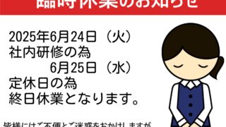 6月24日(火)臨時休業のお知らせ【リライズ船橋馬込店】